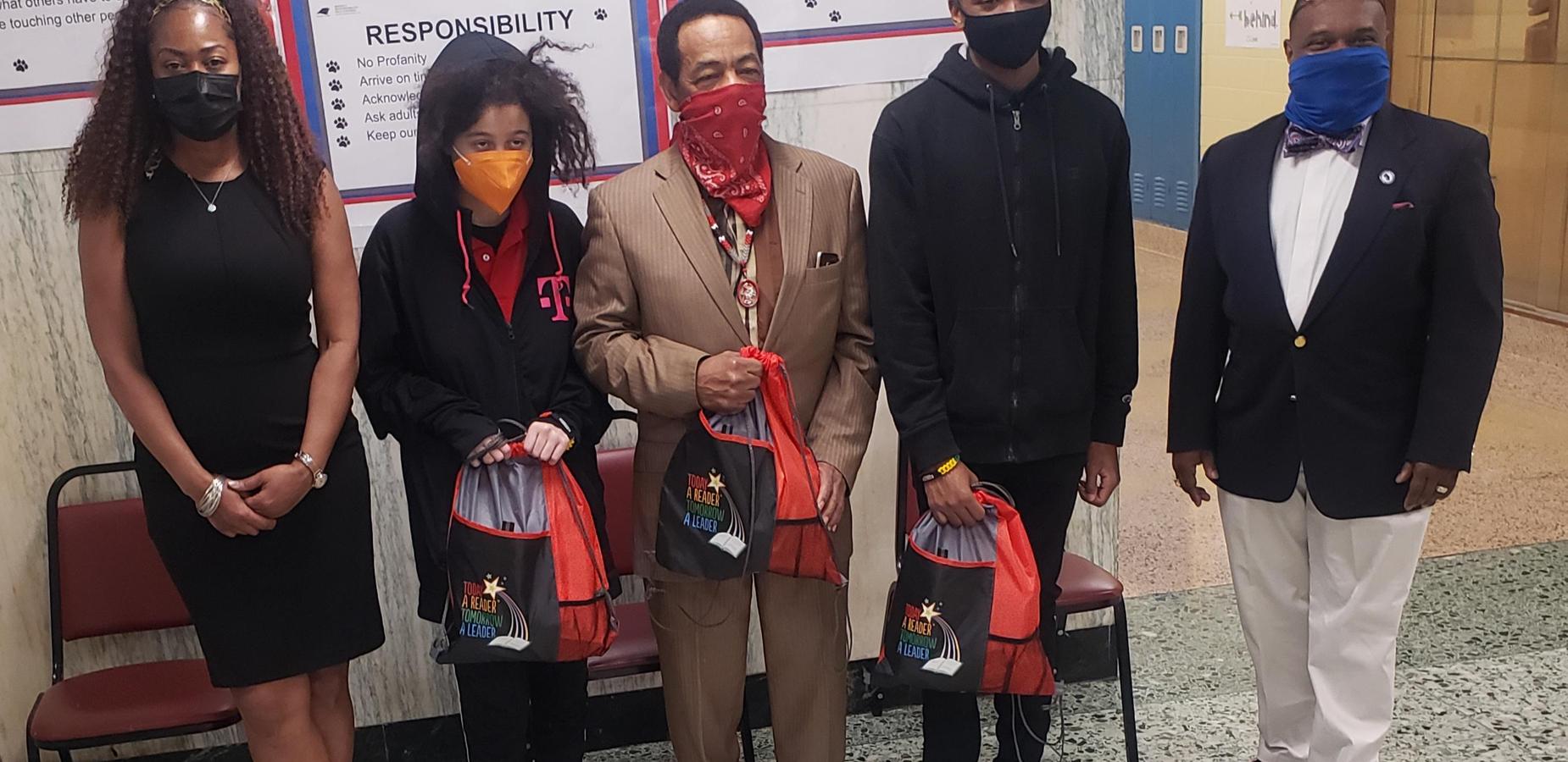 Mr. Lewis and Mrs. Jones with a few positive behavior students